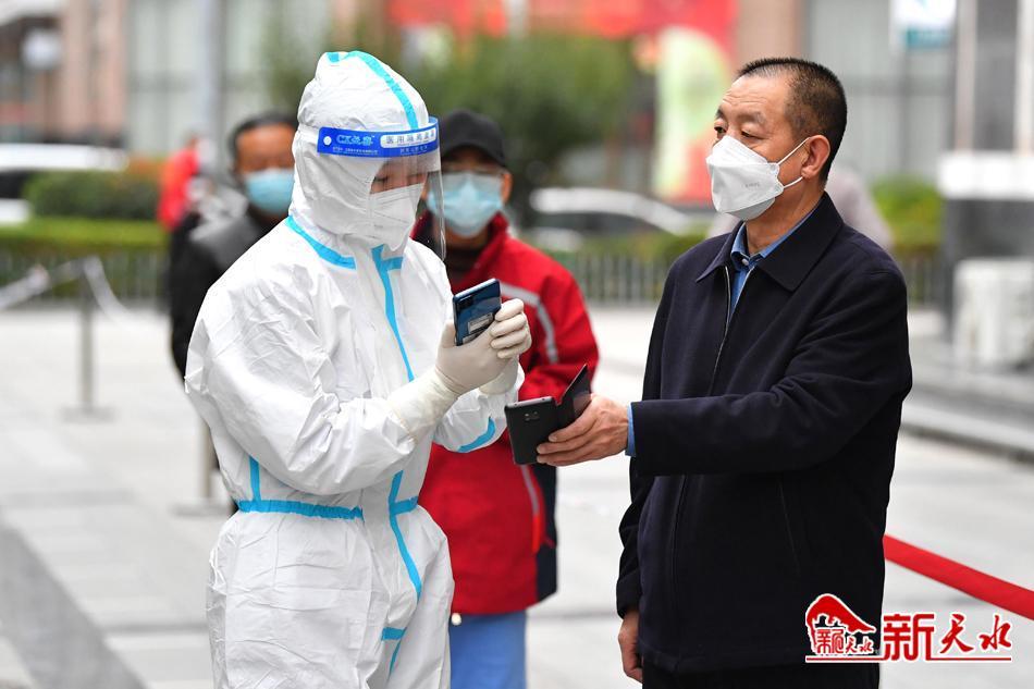 当天上午7时至12时,秦州区七个街道及玉泉镇辖区内的所有男性居民(含常住人口、流动人口、外地户籍人员)参加了核酸检测。群众在社区、村委会工作人员的引导下,有序排队参加核酸检测。