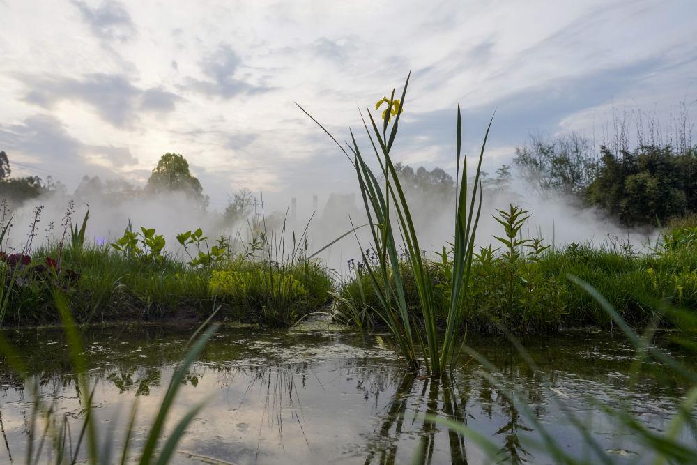 重庆市梁平区双桂湖畔三峡竹博园内的小微湿地景观。新华社记者刘潺摄