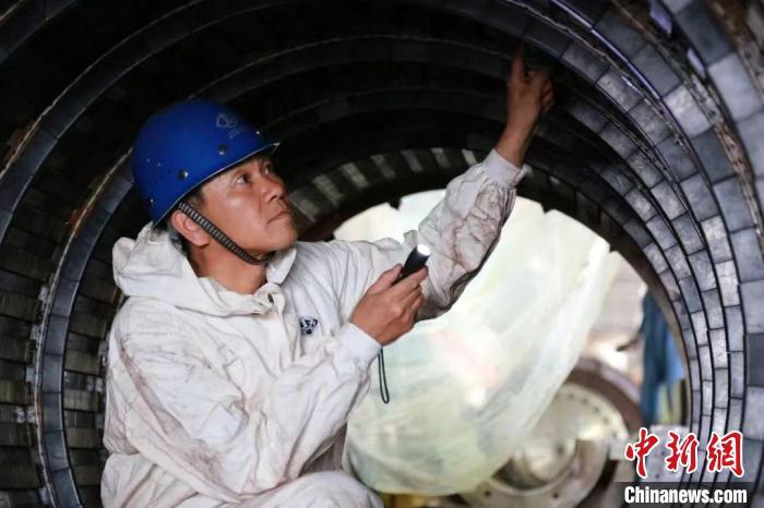 图为张连顺在发电机内检查发电机定子线圈。(资料图) 受访者供图