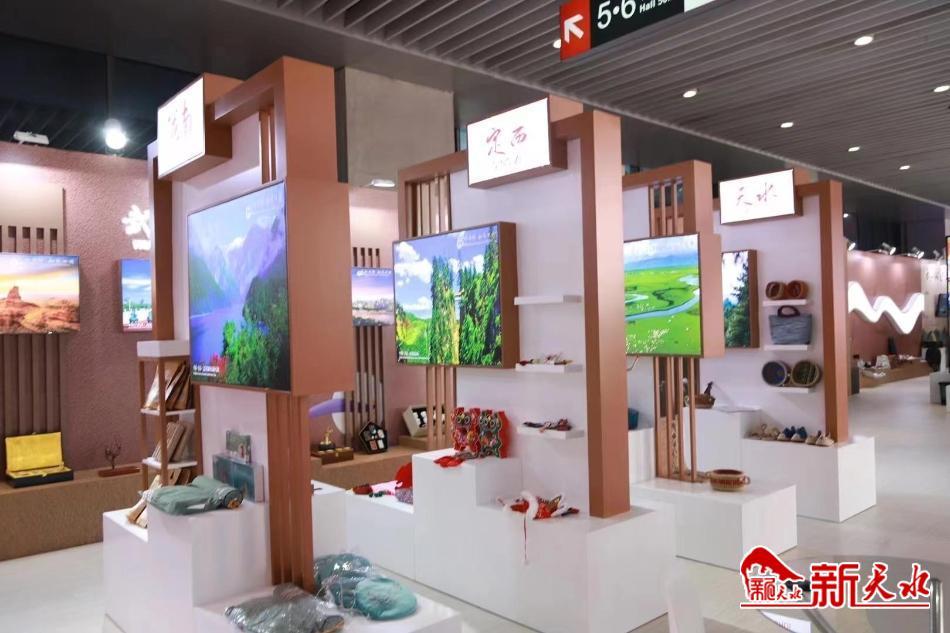 在本届进博会上,甘肃省搭建了“中国这十年”对外开放成就展甘肃展馆和"中国旅游"甘肃展区,通过文字、图片、视频和实物(展品)相结合的方式,全方位、立体式展示甘肃对外开放取得的成就和甘肃厚重的文化底蕴及丰富的旅游资源。天水市花牛苹果、苹果汁等农特产品在对外开放成就展甘肃展馆集中展出,大地湾彩陶、甘谷麻鞋等文旅产品在"中国旅游"甘肃展区精彩亮相。