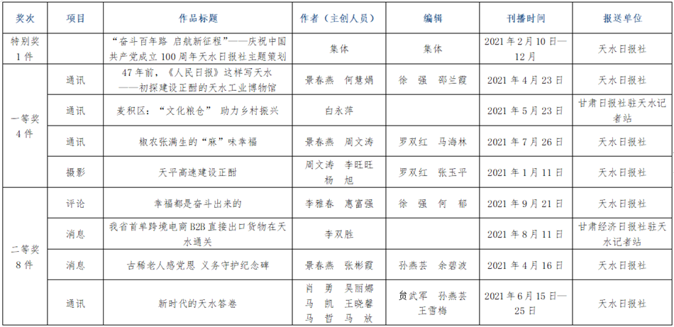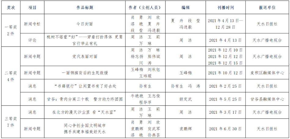 权威发布!第二十五届(2021年度)天水市新闻奖获奖作品揭晓(附全名单)