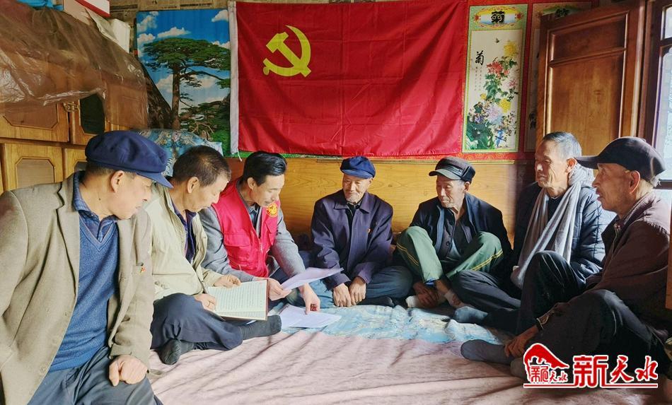 吃过早饭的盘坡村党支部书记赵创虎带领部分党员来到老党员牛周虎家中,一堂别开生面的“炕头课堂”拉开了帷幕。