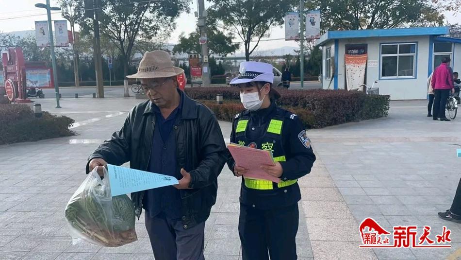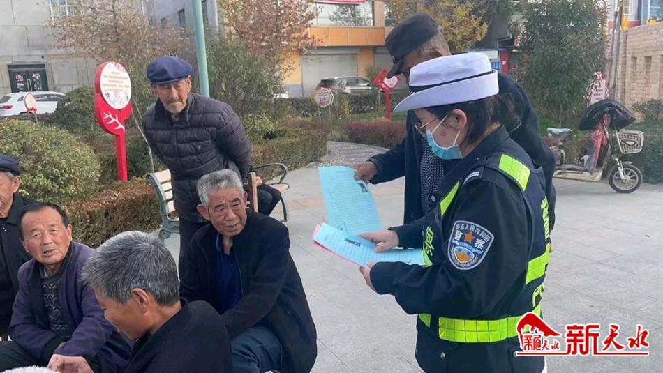 新天水讯 11月8日,秦安县公安局交警大队民警走进映南社区,结合当前“一盔一带”安全守护行动,开展交通安全宣传活动。