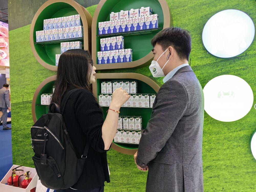 新西兰乳业品牌荷仕兰在本届进博会全球首发的一款零乳糖奶粉引起了王艳的兴趣。“中国有大量乳糖不耐受人群,这款新品主打的零乳糖、有机、高钙等概念,比较符合我对成人奶粉的采购预期。”
