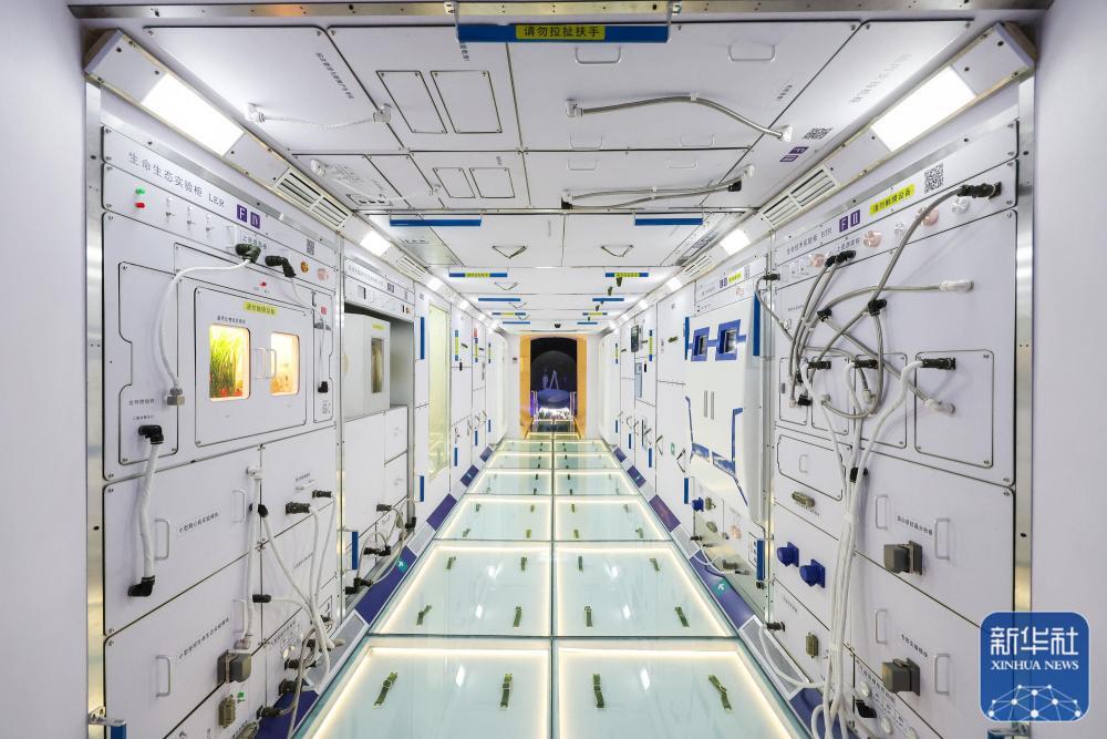 室内展览同样亮点十足。“天宫”筑梦,梦圆九天,在中国航天科技集团有限公司展区,由航天科技集团五院精心打造的中国空间站组合体展示舱成为展会上火热的观众打卡点。
