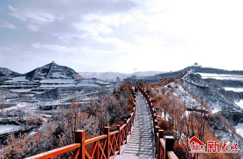 11月12日,初雪落下,武山县鲁班山景区银装素裹,宛如一幅雪山冰川图。洁白无瑕的云朵漫过连绵的山峰,拂过幽幽西部奇峡,粉妆玉砌,幻造出一片银色的屏障,奇美而壮观。
