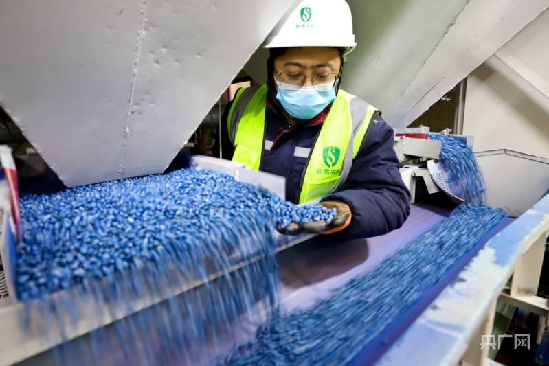 工作人员查看种子“包衣”情况(央广网发 王将 摄)