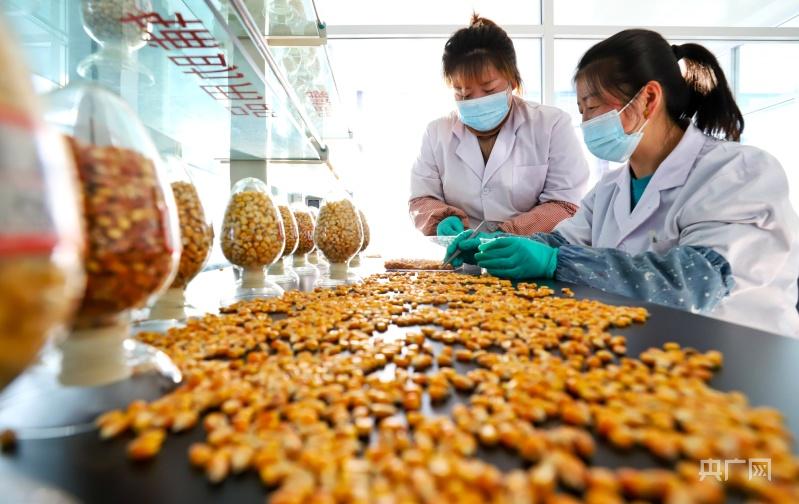 技术人员正在检验玉米种子(央广网发 王将 摄)
