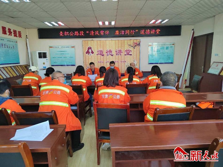 新天水讯【通讯员 刘瑞】11月16日,麦积公路段举办“清风常伴,廉洁同行”道德讲堂,进一步弘扬单位廉洁文化建设,提升干部职工“不敢腐、不能腐、不想腐”的思想自觉。