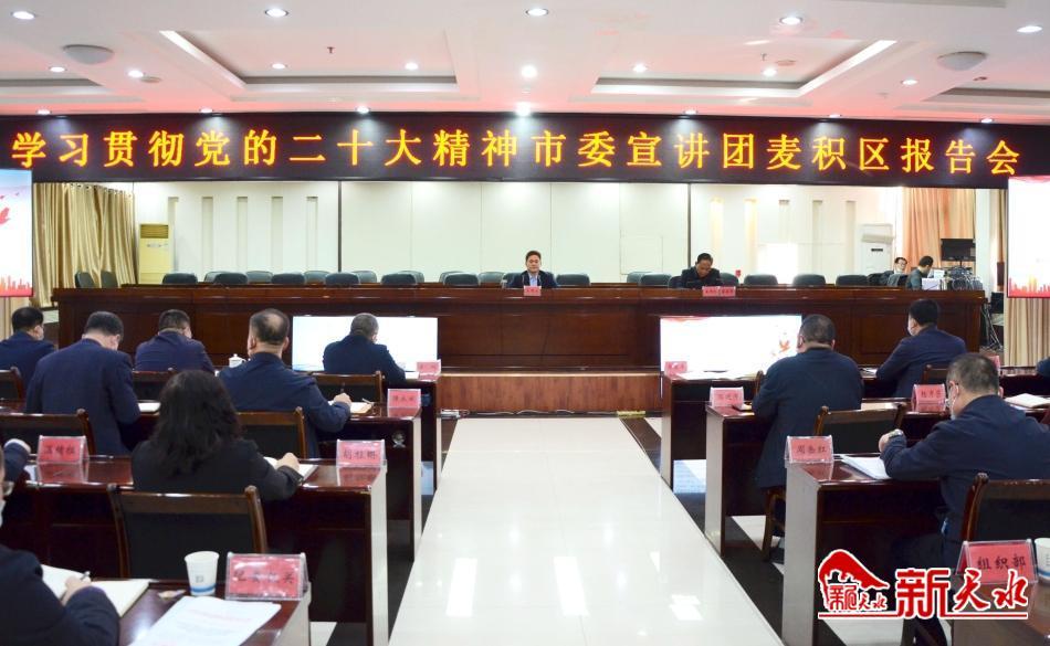 新天水讯【记者王晓馨】11月16日,学习贯彻党的二十大精神市委宣讲团宣讲报告会在麦积区举行,市委副书记、市长王国先作宣讲报告。他强调,要把学习宣传贯彻党的二十大精神作为当前和今后一个时期的首要政治任务,持之以恒在全面学习、准确把握、深入落实上下功夫,深刻领悟“两个确立”的决定性意义,切实增强“四个意识”、坚定“四个自信”、做到“两个维护”,坚定不移沿着习近平总书记指引的方向勇毅前行。