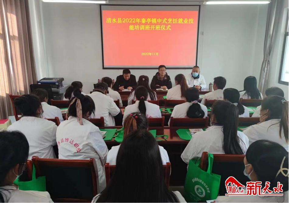 新天水讯 近日,清水县秦亭镇会同县人社局、博达职业培训学校,举办2022年中式烹饪技能培训班,由专业烹饪老师对来自19个行政村的53名劳动力手把手现场教学。