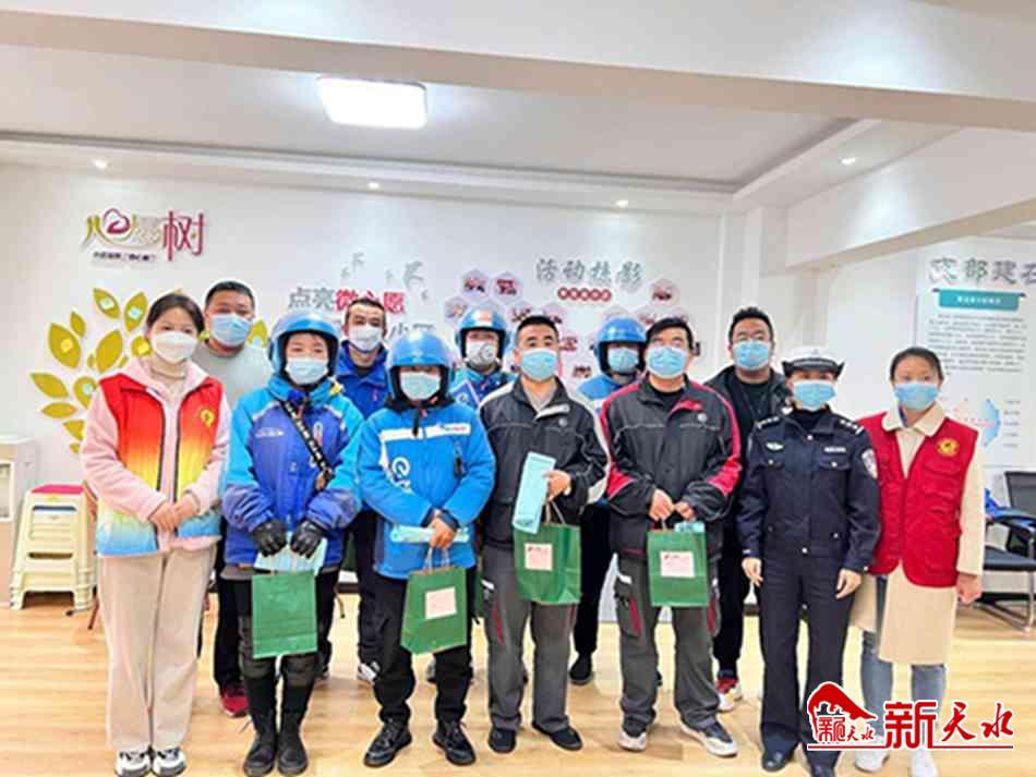 新天水讯【特约通讯员 何俐丽】近日,秦州区西关街道聚宝盆社区依托聚宝盆小区网格党支部“爱心驿站”开展了关爱新就业群体活动,以充分调动新就业群体服务基层社会治理的积极性,有效促进新业态新就业群体舒心工作、全面发展。