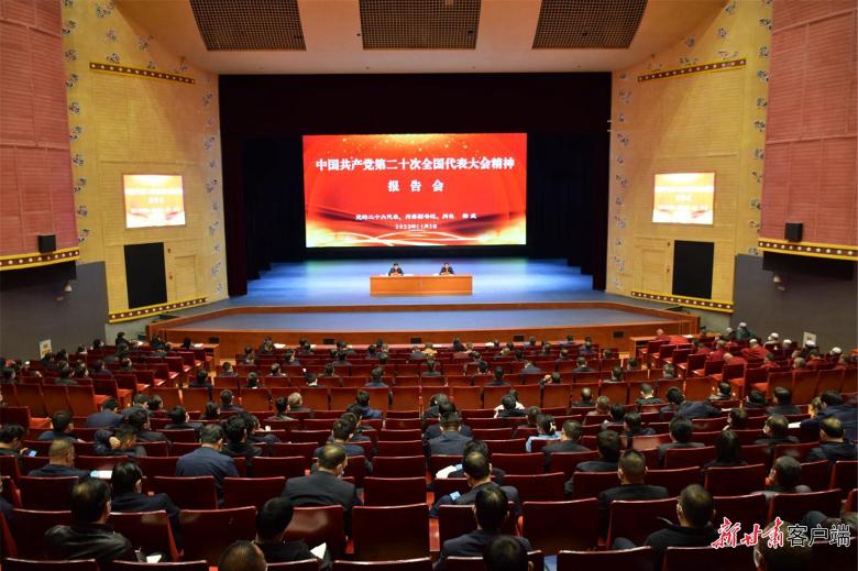 11月3日上午,在甘南大剧院,甘南州党政领导干部、各人民团体、“两代表一委员”、宗教界人士共350余人齐聚一堂,聆听党的二十大代表、甘南州委副书记、州长杨武所作的党的二十大精神辅导报告。