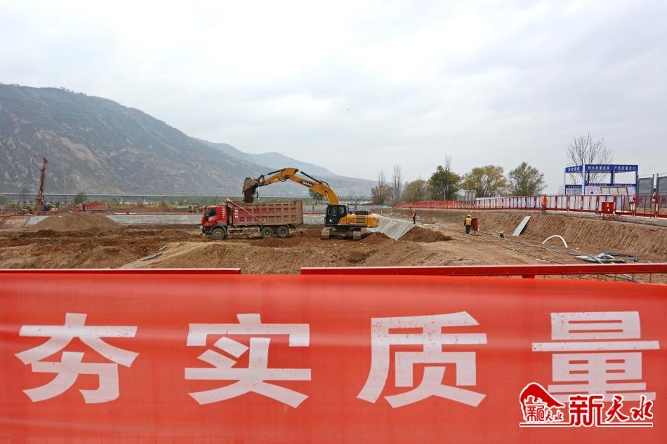 11月17日,甘肃(天水)国际陆港市政基础设施工程污水处理厂建设现场正在施工。
