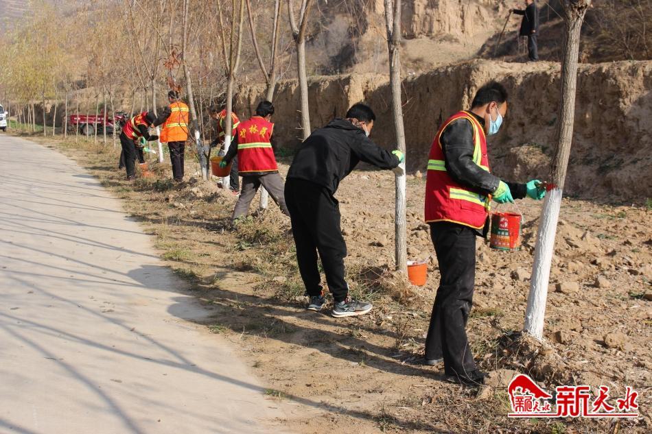 此外,咀头乡各村还围绕清草护树、清理垃圾、美院净村等重点,充分发挥新时代文明实践志愿服务力量,广泛组织发动群众,充分调动社会力量,以“乡村道路无杂草垃圾、树木整齐美观无枯枝、房前屋后整洁无乱堆乱放、庭院整洁不杂乱、沟渠畅通无杂物、田间地头无废弃秸秆”为目标,乡综合行政执法队组织护林员80人次集中对城咀公路段曲里坡12公里的行道树进行修整,采取“四清一补一涂白”措施,清理道路两侧枯(死)树1200棵,防虫涂白行道树1500棵。
