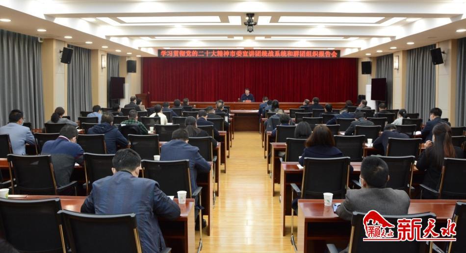 新天水讯【记者 李欣桐】11月18日上午,学习贯彻党的二十大精神市委宣讲团统战系统和群团组织报告会召开,市委副书记、统战部部长杨小平紧扣党的二十大报告原文,围绕党的二十大的主题和主要成果、过去5年的工作和新时代10年的伟大变革、马克思主义中国化时代化、中国式现代化、全面建设社会主义现代化国家的目标任务、坚持党的全面领导和全面从严治党、应对风险挑战等方面,对党的二十大精神作了全面宣讲和深入阐释。