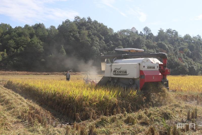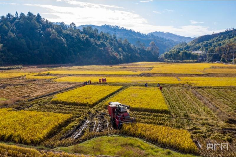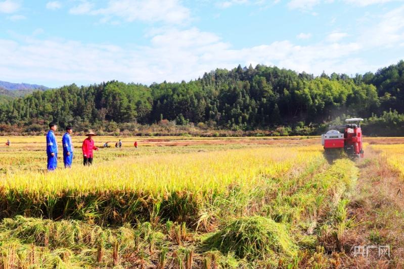 南平市光泽县寨里镇浆源畲族村最后一批晚稻田迎来丰收(央广网发 傅贤斌 摄)