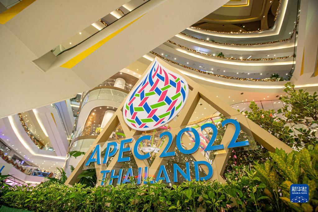这是2022年11月16日在泰国首都曼谷拍摄的2022年亚太经合组织会议标识。新华社记者 王腾 摄