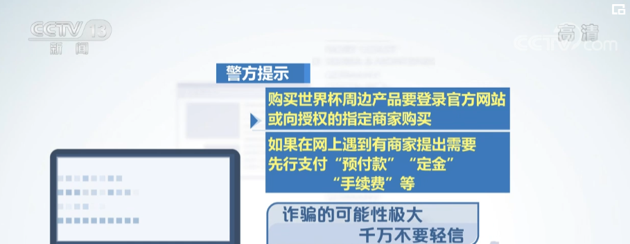 随着世界杯的来临,各种打着售卖世界杯周边旗号网店也开始增多,这些网店要么就是用盗版冒充正品,骗取高额收购款,要么就要求事主先转账付款,收到货款后拉黑买家。警方提示:购买世界杯周边产品要登录官方网站或向授权的指定商家购买,如果在网上遇到有商家提出需要先行支付“预付款”“定金”“手续费”等,诈骗的可能性极大,千万不要轻信。