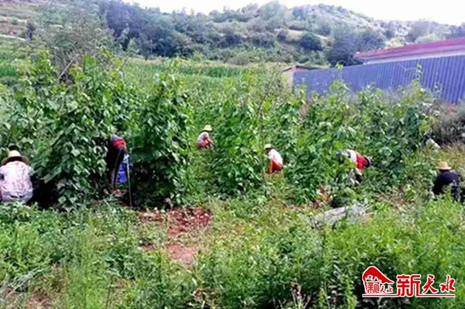 硬山村常年平均气温较低、土地质量不高、水资源较为匮乏、常住人口较少,由于发展传统农作物需要耗费大量的人力、物力以及优越的自然条件,因此探索适宜在硬山村大面积种植的农作物就迫在眉睫。为调整产业结构,增加群众收入,壮大村级集体经济,村“两委”会同联系单位县委组织部经过多次实地考察、调研论证,结合自然条件、地形特点、种植难易程度和后期维护成本,将与硬山村条件相似度较高的张家川特色乌龙头产业引进到硬山村,作为中长期村集体经济发展产业。村“两委”通过入户走访宣讲政策、前往张家川观摩、现场讲解、亲身体验等方式,加之不断强化村“两委”干部、致富带头人培训,提升乌龙头种植水平。为做活山地旱作农业大文章,村党组织率先垂范,2016年流转村集体土地30亩,引进张家川乌龙头苗木9000株,动员党员及公益性岗位人员精心培育,2018年底初步见效,长势良好,实现收益达3万余元。村“两委”干部以此为契机大力宣传乌龙头种植优势,通过“党支部+合作社+集体经济+贫困户”产业发展的模式,动员无能力自种及长期外出的贫困户21户入股乌龙头苗木到硬山村集体经济股份合作社,采取按比例分红的方式促进贫困户增收,每亩乌龙头收益为贫困户分红40%、合作社分红40%、村集体分红20%。