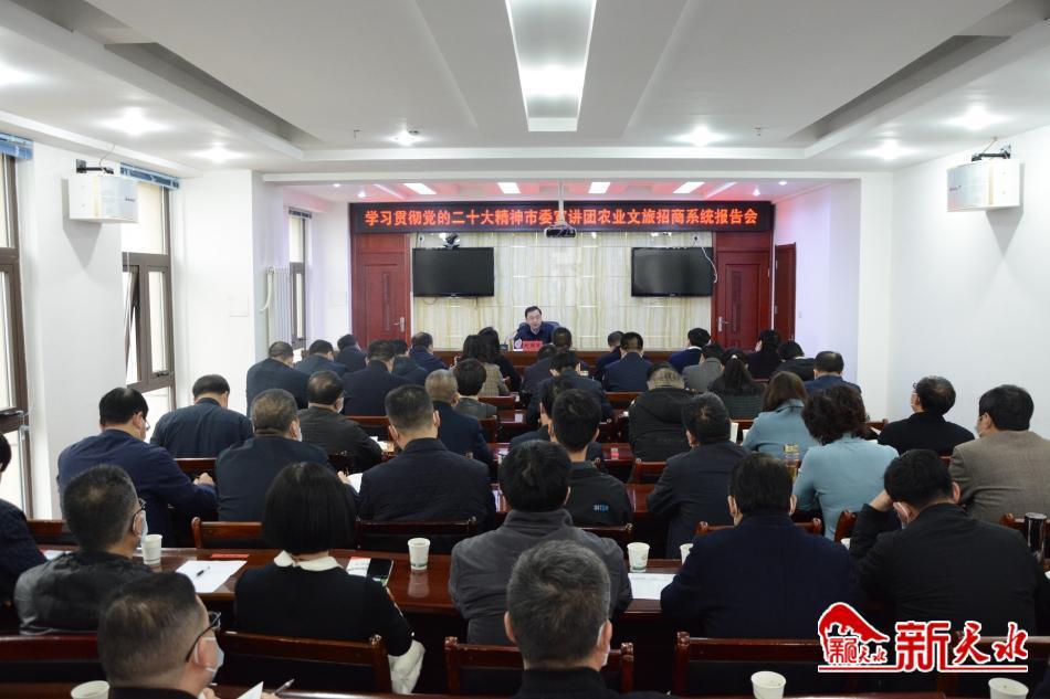 新天水讯【记者李欣桐】11月23日,学习贯彻党的二十大精神市委宣讲团农业文旅招商系统报告会举行。副市长刘国军作宣讲报告。