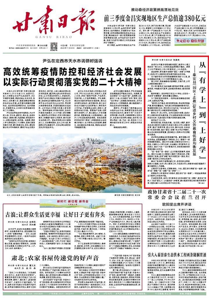 甘肃日报|秦安县“园区+走教”促进乡村义务教育优质均衡发展