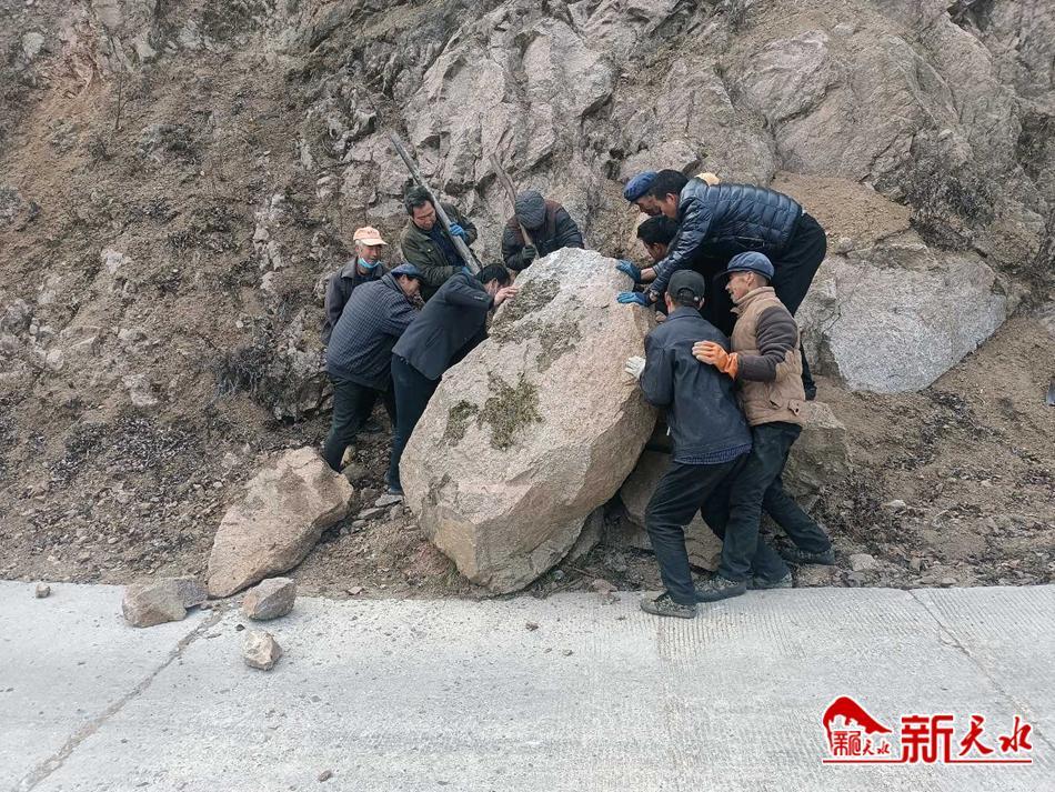 近日,武山县温泉镇小南村不等不靠,积极发扬团结协作的精神,党员干部带头、群众积极参与,自发清理通村道路上的滚石,消除隐患,确保村民平安出行。