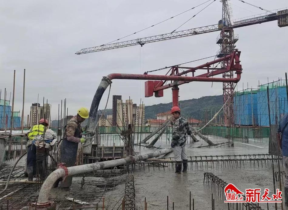 新天水讯【记者蔚军平】11月25日上午,随着最后一方混凝土浇筑完成,秦州区东兴路片区棚户区改造项目1号楼成功封顶,这也是该项目主体封顶的最后一栋楼,为整个项目早日完工奠定了基础。