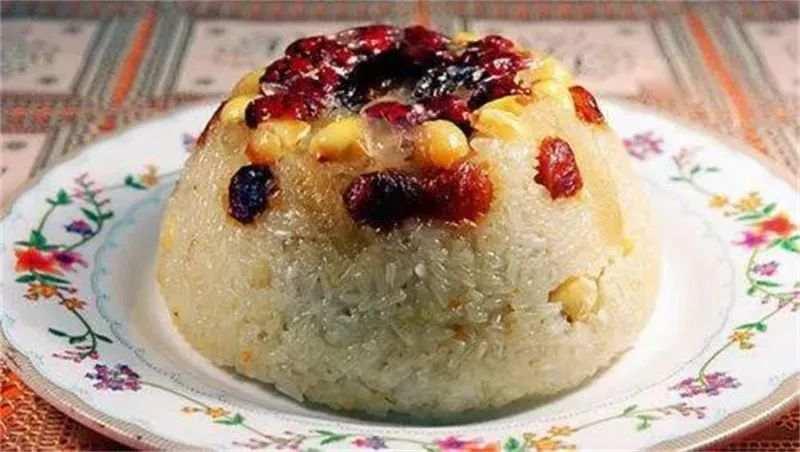 一碗八宝甜饭——八宝甜饭是一道甘肃的传统名点,又名“八宝饭”,是用八种不同的原料熬制成粥,寓意“团团圆圆”“幸福美满”。