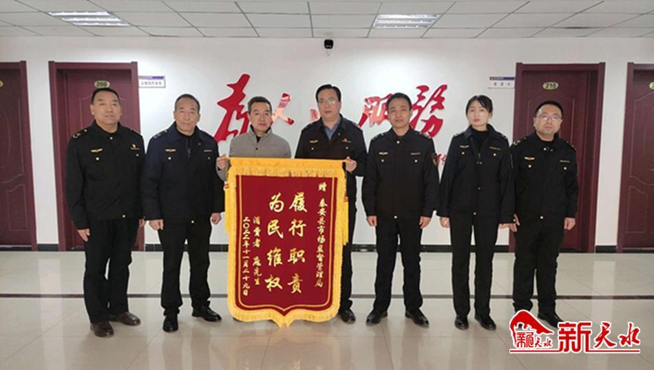 新天水讯【通讯员 王顺芳】11月30日,秦安县消费者庞先生将一面印有“履行职责、为民维权”的锦旗送到了秦安县市场监管局工作人员手中,以此表达对该局高效为民处理消费纠纷的诚挚谢意。