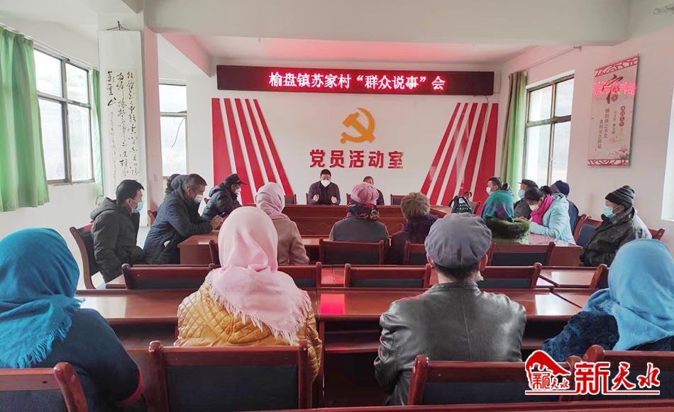 11月30日,在武山县榆盘镇苏家村党员活动中心,一场“群众说事会”在这里举行。活动现场热闹非凡,会议中途无人离席。