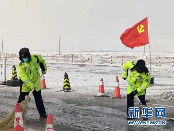 他们是抵御寒潮的坚守者。29日天还没亮,甘肃省敦煌市公安局交通警察大队民警王生明穿上棉大衣、戴上棉帽子走出了家门。雪后路滑,他必须提早出门,这样才能在8时抵达三四十公里外的党河公安检查站工作。