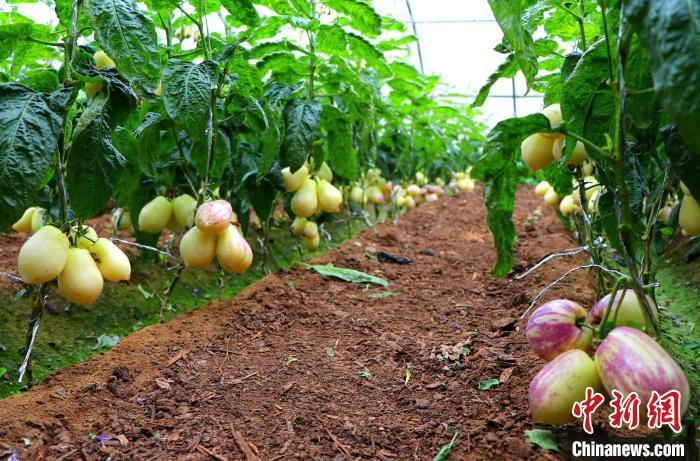 宋和村的温室大棚里,种植户正忙着打理人参果。 马爱彬 摄