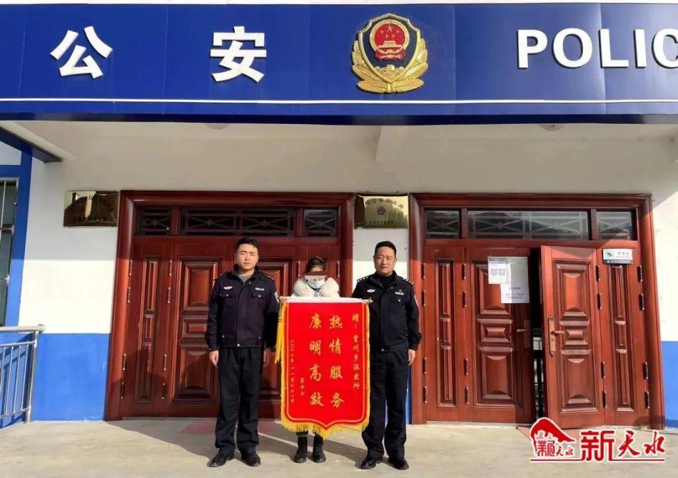 新天水讯【记者蔚军平】11月22日,清水县的刘女士将一面写有“热情服务 廉明高效”的锦旗赠送给了清水县公安局贾川派出所,感谢民警帮助自己找回了丢失的手机。