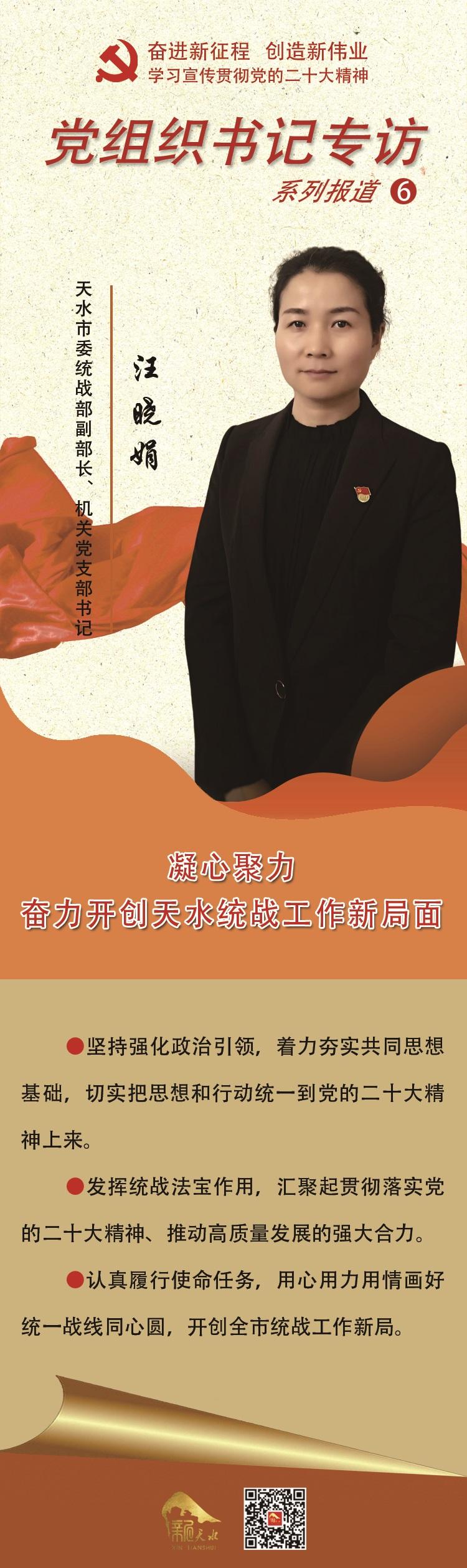 【微海报】贯彻二十大精神·党组织书记专访⑥ | 汪晓娟:凝心聚力 奋力开创天水统战工作新局面