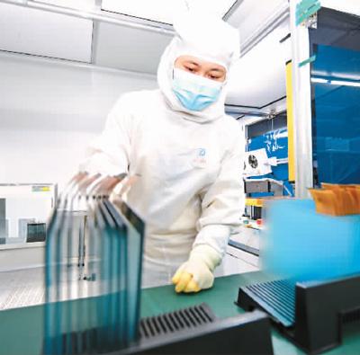 11月28日,江西省信丰县高新技术产业园区,工人在一家电子产品生产企业车间内加工出口触控显示屏。朱海鹏摄(人民视觉)