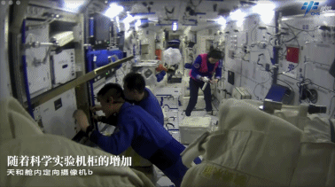 为尽快开展工作和正常生活,乘组迅速投入在轨驻留环境设置,开展了微生物采样,各类设备安装、调试及维修等工作,并先后进入天舟四号、天舟三号货运飞船进行物资整理与转移,打造舒适宜居的太空家园。