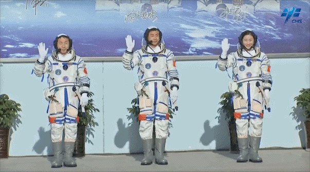 2022年6月5日7时54分,神舟十四号载人飞行任务航天员乘组出征仪式在酒泉卫星发射中心问天阁广场举行,航天员陈冬、刘洋、蔡旭哲领命出征。