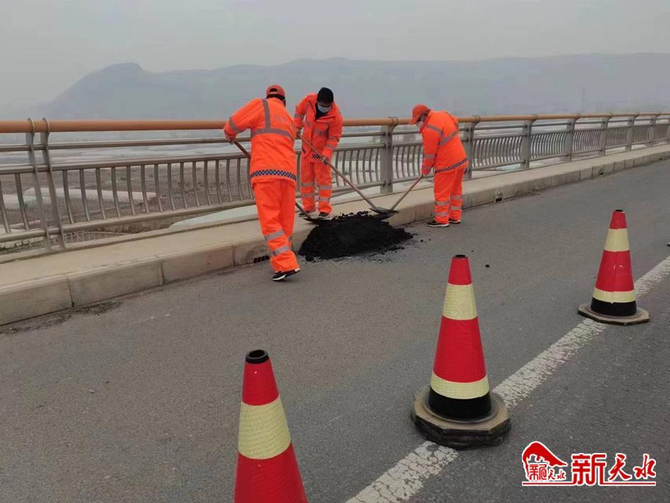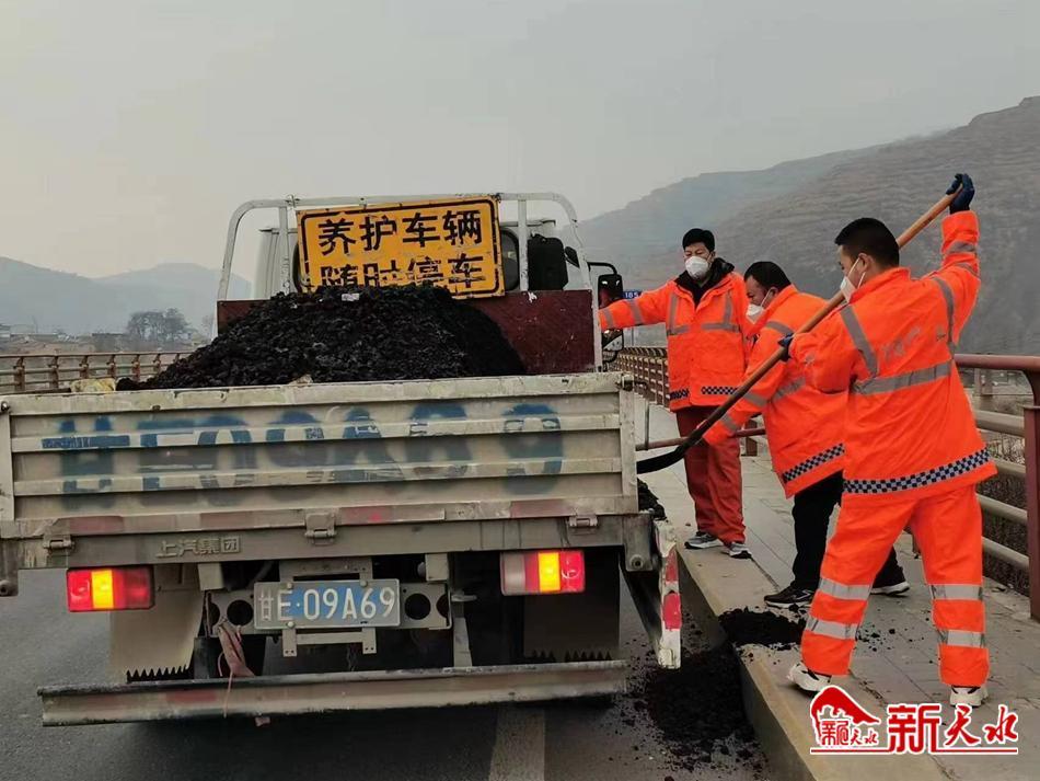 新天水讯 近日,甘谷公路段利用气温有所回升的晴好天气,组织养护人员在国道310线,省道304、325线的特大桥梁、急弯陡坡、临水临崖及背阴路段补充防滑料,储备了大量的融雪剂,加强冬季防滑保畅的应急物资保障。