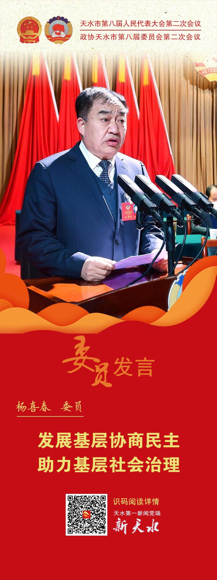 两会海报丨杨喜春委员:发展基层协商民主 助力基层社会治理