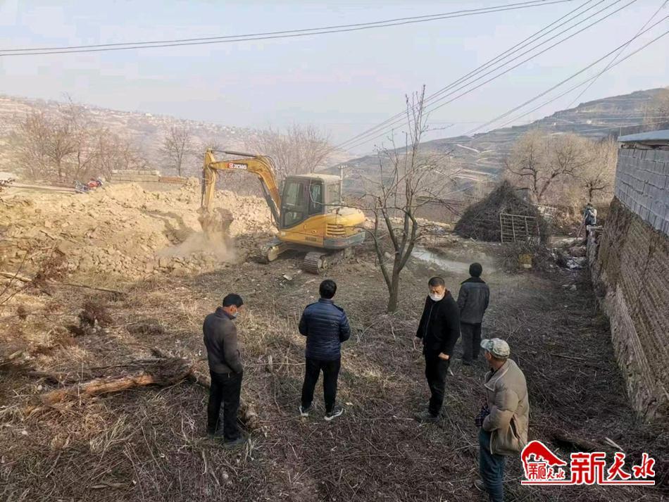 新天水讯 12月10日,武山县山丹镇龚山村,伴随着挖掘机的轰鸣声,几处年久失修的塌房烂院、残垣断壁被成功拆除。近期,该村在人居环境整治方面取得了新突破。