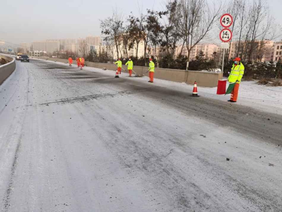 根据巡查人员反馈信息,该段机关工作人员在段领导的带领下,结合S221线古土梁、闫家梁、黄家岭路面结冰程度,采取人工+机械的作业方式,在积雪未消融和易结冰路段利用机械撒布了融雪剂,对易打滑、易结冰的急弯、陡坡、桥面和背阴路段,采取人工铲除积雪积冰后,以铺撒防滑料的方式保障车辆通行安全。