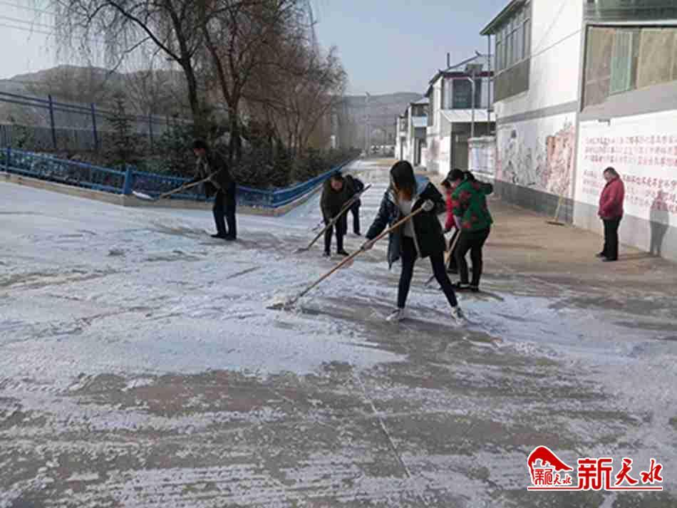 新天水讯 近日,清水县白沙镇积极组织干部群众、志愿者开展道路除雪,全力保障群众出行和道路交通安全。