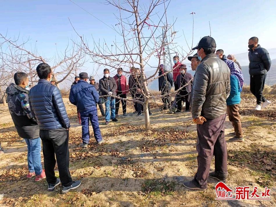 新天水讯 时下,正值果树修剪的主要时期,做好冬季果园田间管理工作是来年丰收的关键。秦安雪原果业有限公司邀请县果业局技术人员,深入莲花镇袁山村,开展苹果冬季整形修剪及施肥等方面技术培训。
