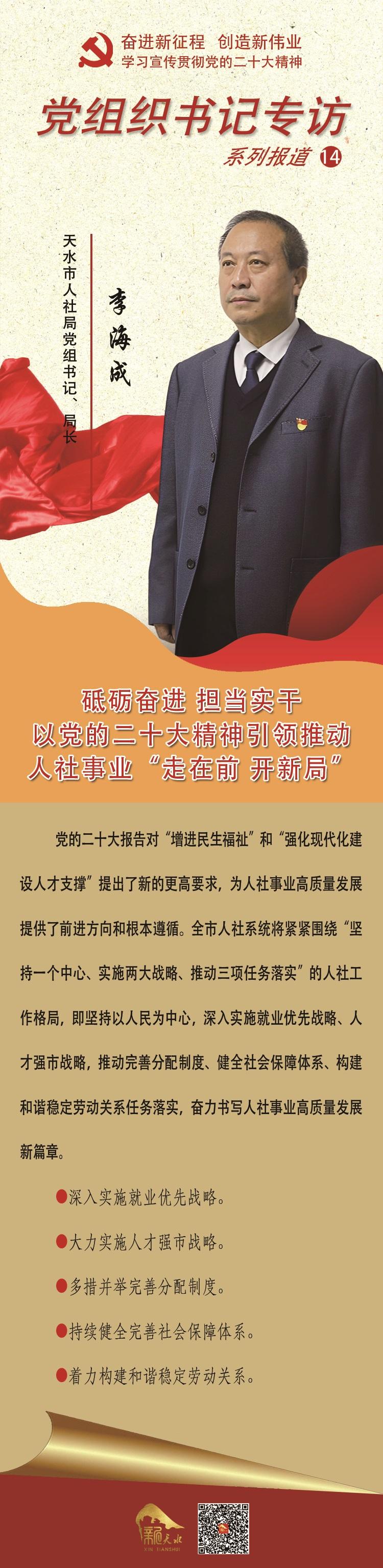 【微海报】贯彻二十大精神·党组织书记专访⑭ | 李海成:砥砺奋进 担当实干 以党的二十大精神引领推动人社事业“走在前 开新局”