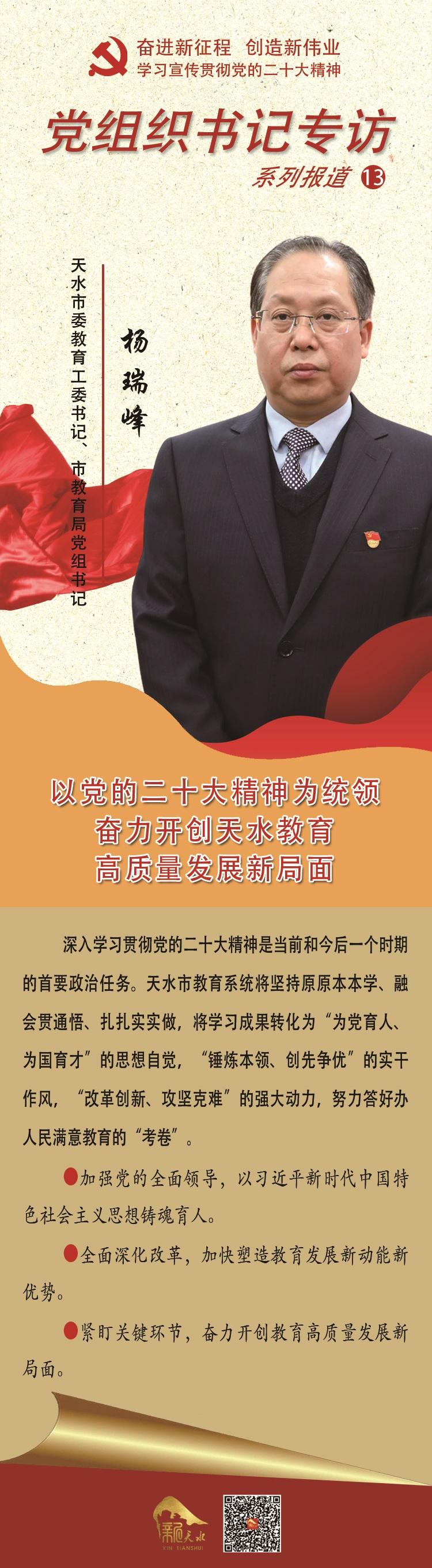 【贯彻二十大精神·党组织书记专访⑬】 杨瑞峰:以党的二十大精神为统领 奋力开创天水教育高质量发展新局面