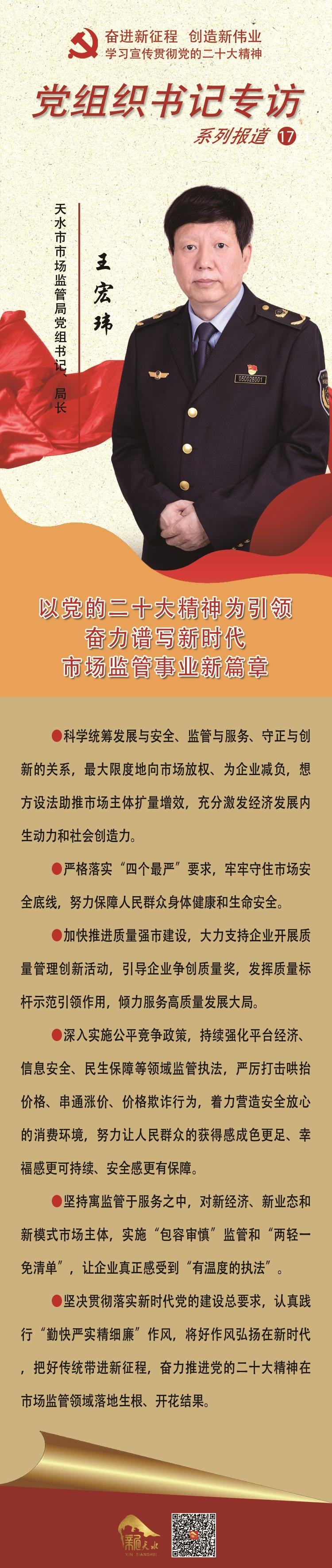 【贯彻二十大精神·党组织书记专访⑰】王宏玮:以党的二十大精神为引领 奋力谱写新时代市场监管事业新篇章