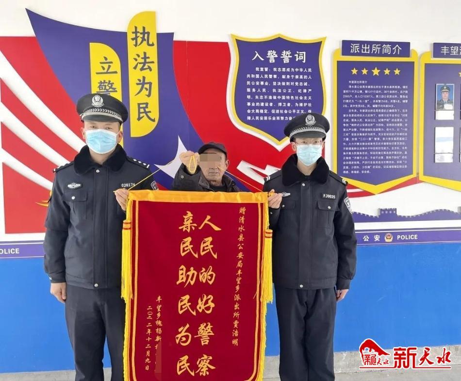 新天水讯【记者蔚军平】近日,清水县丰望乡的胡先生来到清水县公安局丰望派出所,将一面写有“人民的好警察,亲民助民为民”的锦旗赠送给了民警,感谢民警追回了其孙子在网络游戏中充值的5万余元。