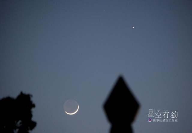 这是2013年5月12日晚在江西省九江市都昌县上空拍摄的木星合月。(新华社发)