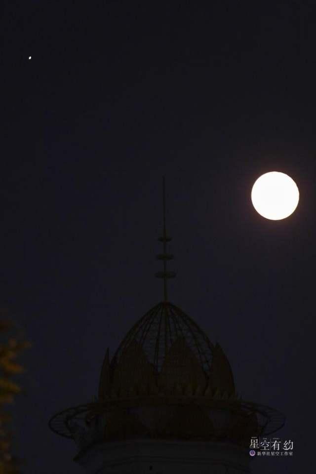 这是2022年9月11日晚在北京市丰台区拍摄的木星合月。(新华社记者张铖 摄)